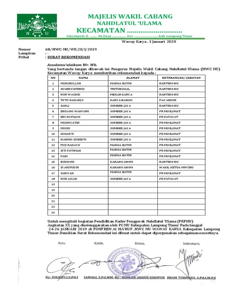 We Have got 9 images about Contoh Surat Rekomendasi Mwc Nu images, photos, pictures, backgrounds, and more. In such page, we additionally have number of images out there. Such as png, jpg, animated gifs, pic art, symbol, blackandwhite, picture, etc. If you're searching for Contoh Surat Rekomendasi Mwc Nu topic, you have visit the ideal page. Our blog always gives you hints for seeing the highest quality picture content, please kindly hunt and locate more enlightening articles and pix that fit your interests.